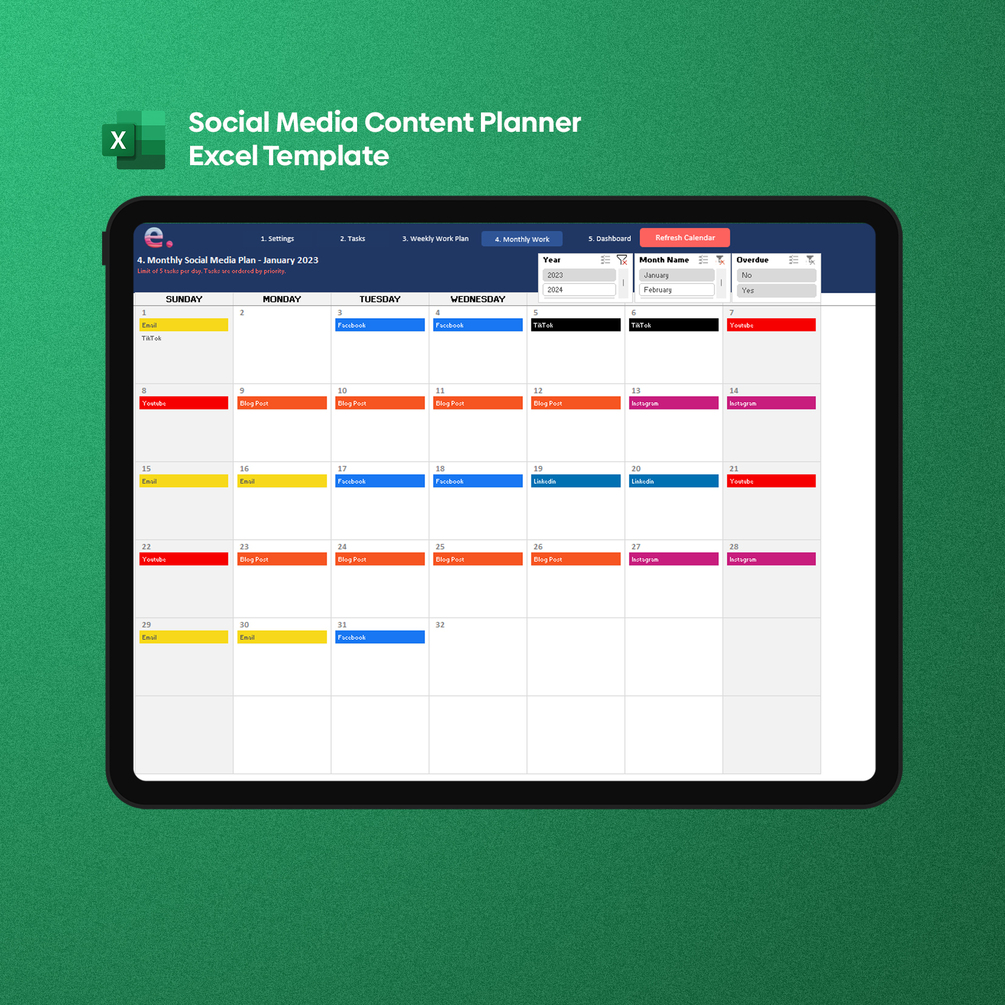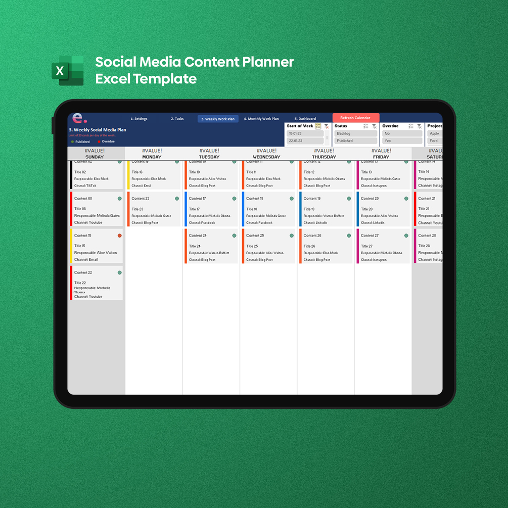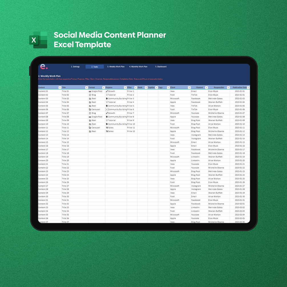We have created the most advanced and easy to use Social Media Content Planner Excel Template that will help you plan, organize and execute your social media plan on different social media platforms. It also consists of a weekly and monthly checklist that will help you ensure every post planned has been executed on the scheduled day.